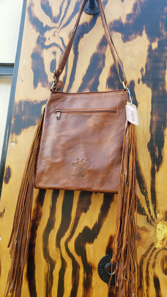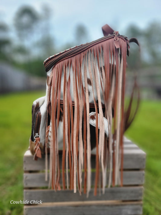 LuLu Fringe Cowhide Backpack - Large Tan and white