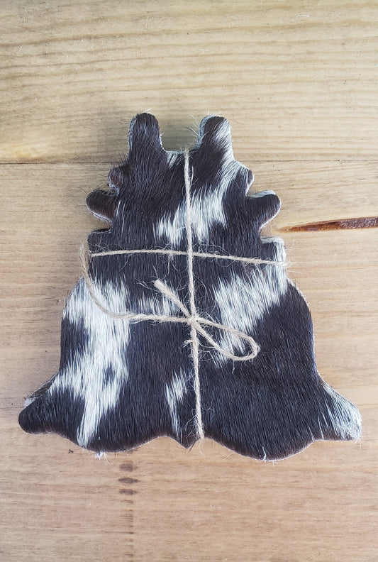 Cowhide Shaped Coasters - 4pc Set - Black & White