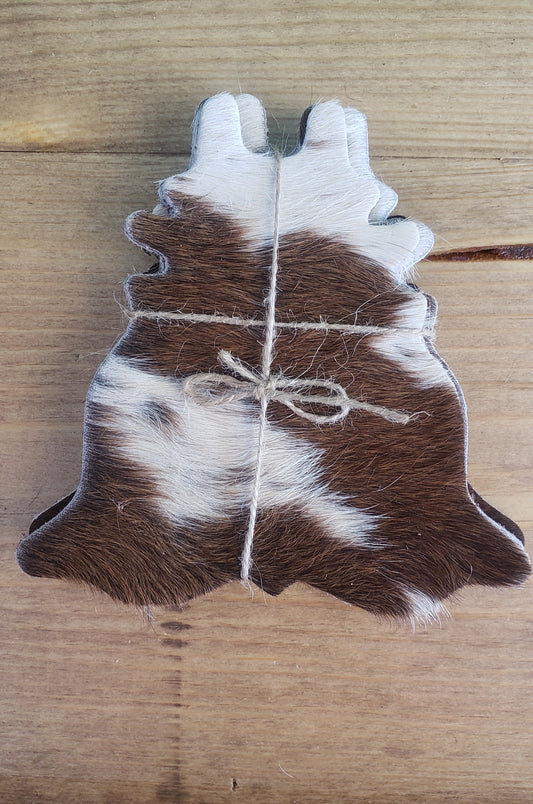 Cowhide Shaped Coasters - 4pc Set - Brown & white
