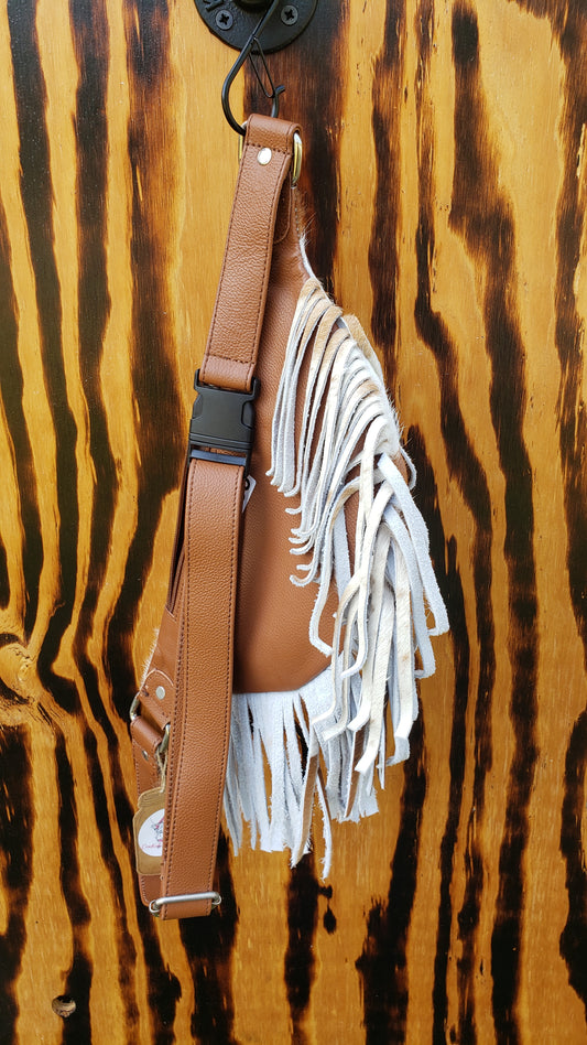 Cowhide Fanny Bag Hair on Fringe Tan & white