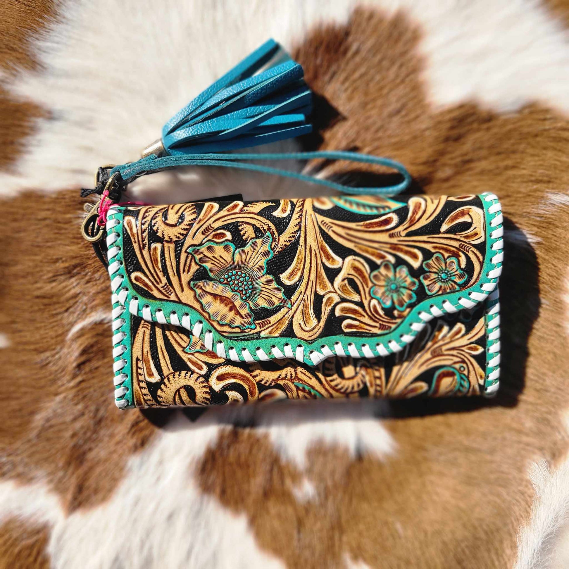 Dolly Trail Hand-Tooled Walletcos Plains Hair-on Hide Wallet